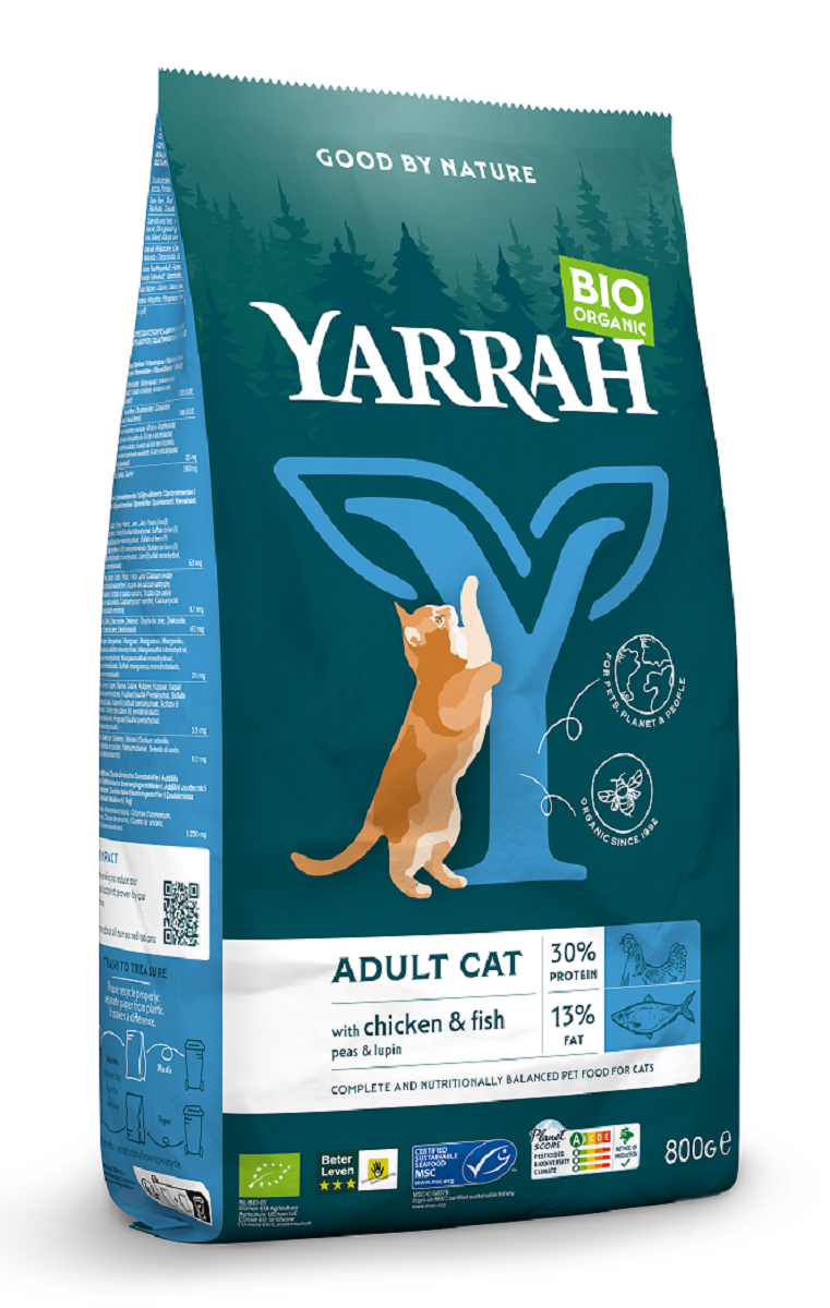 (DLA KOTA DOROSŁEGO) KARMA Z KURCZAKIEM I RYBĄ BIO 800 g - YARRAH