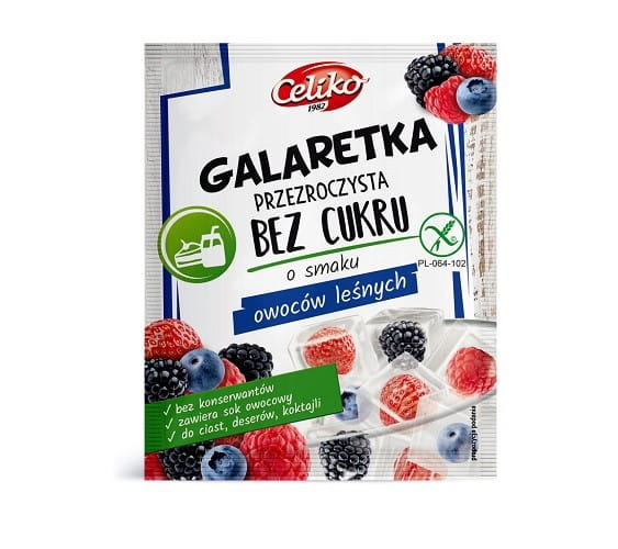 OKAZJA GALARETKA PRZEZROCZYSTA BEZ CUKRU O SMAKU OWOCÓW LEŚNYCH BEZGLUTENOWA 14 g - CELIKO