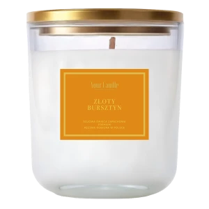 OPIS ZŁOTY BURSZTYN Świeca sojowa o zapachu Złoty Bursztyn otula wnętrze ciepłą, głęboką i niezwykle elegancką kompozycją. Słodko-żywiczne nuty bursztynu przeplatają się z delikatną waniliową miękkością i subtelną drzewną bazą, tworząc zmysłowy, kojący aromat. Naturalny wosk SOJOWY zapewnia czyste i równomierne spalanie, a otulający zapach wprowadza atmosferę luksusu, spokoju i przytulnego ciepła.