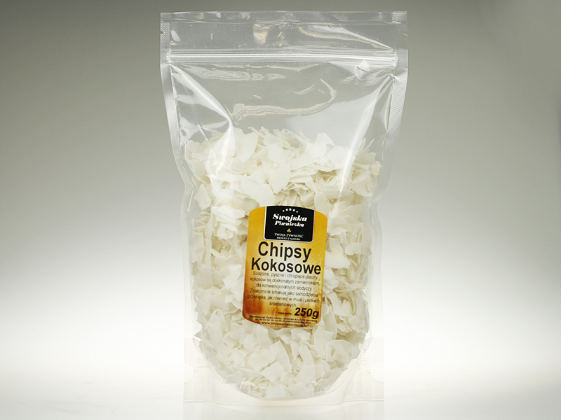 Chipsy Plastry kokosowe 250g Swojska Piwniczka to połączenie egzotycznego smaku i chrupkości, które doda oryginalności Twoim potrawom.