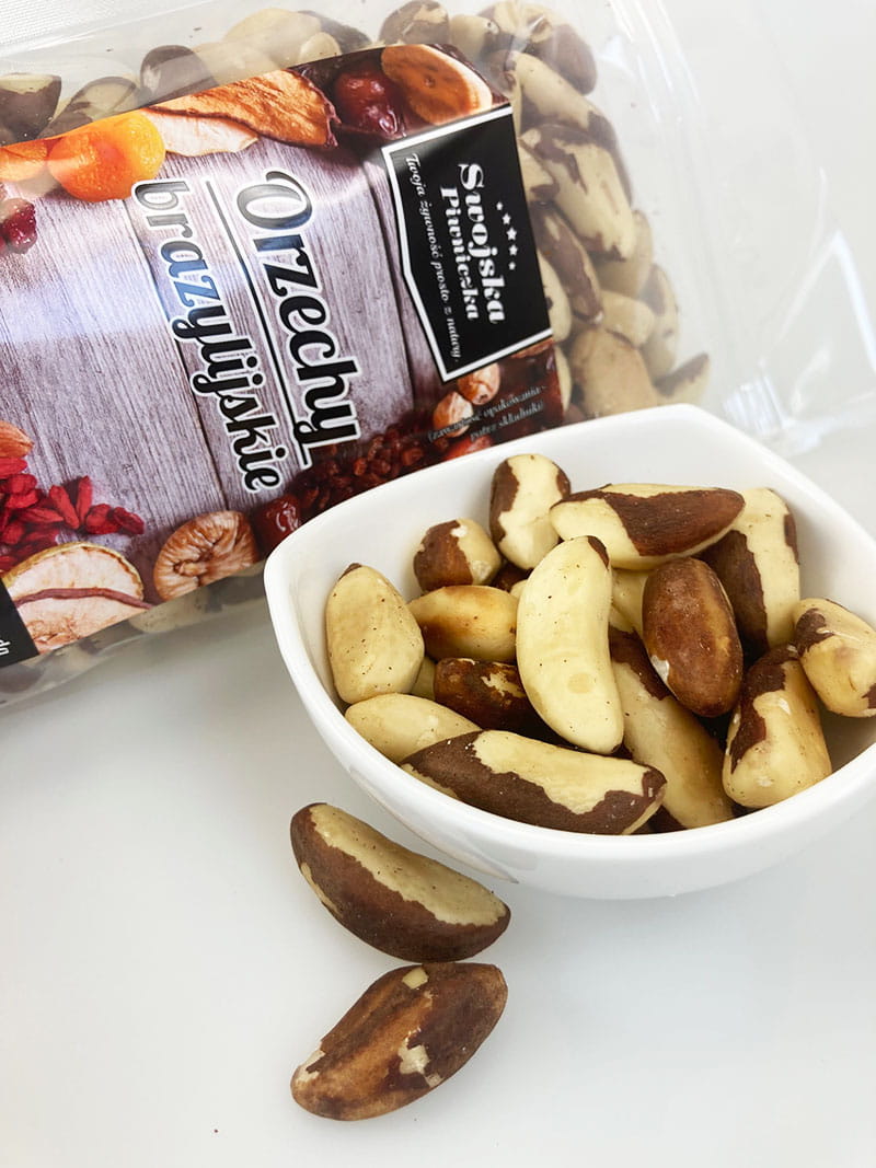 ➕ Ale to nie wszystko! Orzechy brazylijskie zawierają również antyoksydanty, takie jak witamina E i polifenole, które pomagają w zwalczaniu stresu oksydacyjnego w organizmie i ochronie komórek przed uszkodzeniem. Czy wiedziałeś/aś, że orzechy brazylijskie są również źródłem witamin z grupy B? Tiamina, ryboflawina i niacyna, które są niezbędne dla prawidłowego funkcjonowania układu nerwowego, znajdziesz właśnie w tych smacznych orzechach.