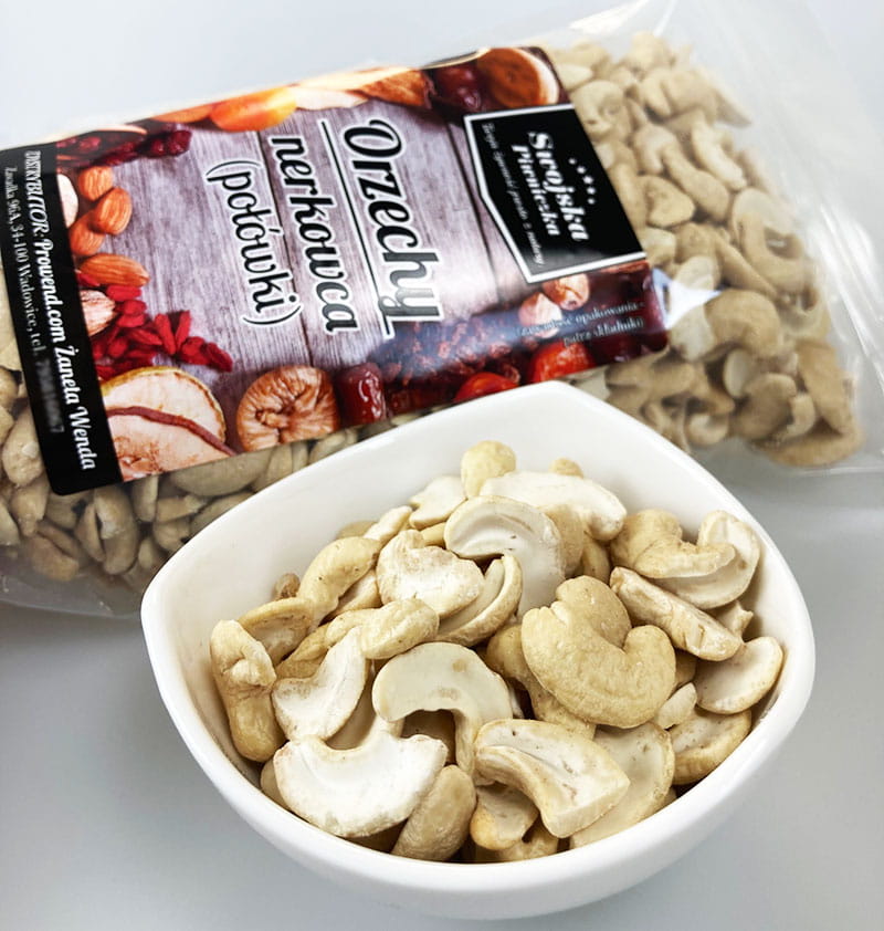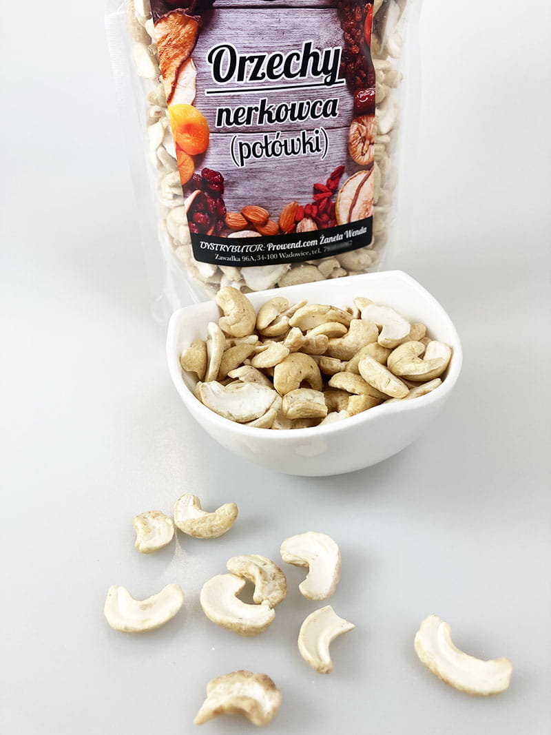 ➕ Nie tylko jako przekąska, ale również jako dodatek do różnych potraw, połówki nerkowca sprawdzą się doskonale. Pokrój je i posyp nimi sałatki, zupy, curry, dania mięsne lub rybne, aby dodać im chrupiącą strukturę i bogaty smak.